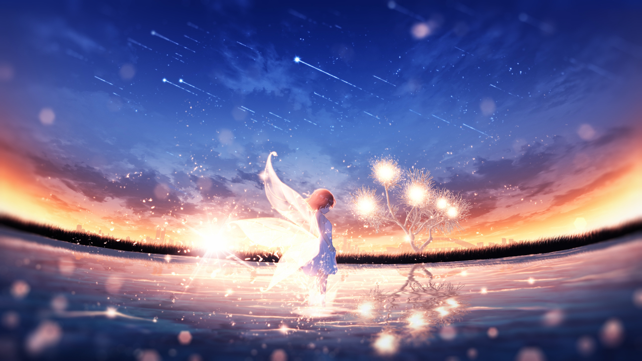 奇幻、女孩、动漫、AI艺术、插图、风景、天空、水、海
