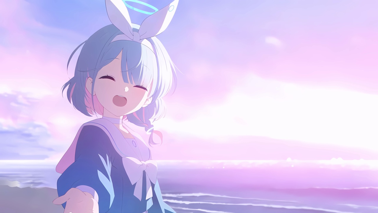 蓝发女孩的微笑