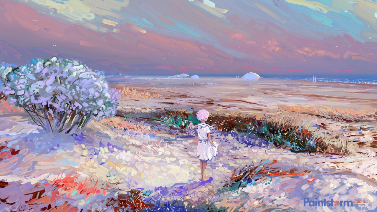 AI艺术、绘画、海滩、天空、自然、孤独、植物