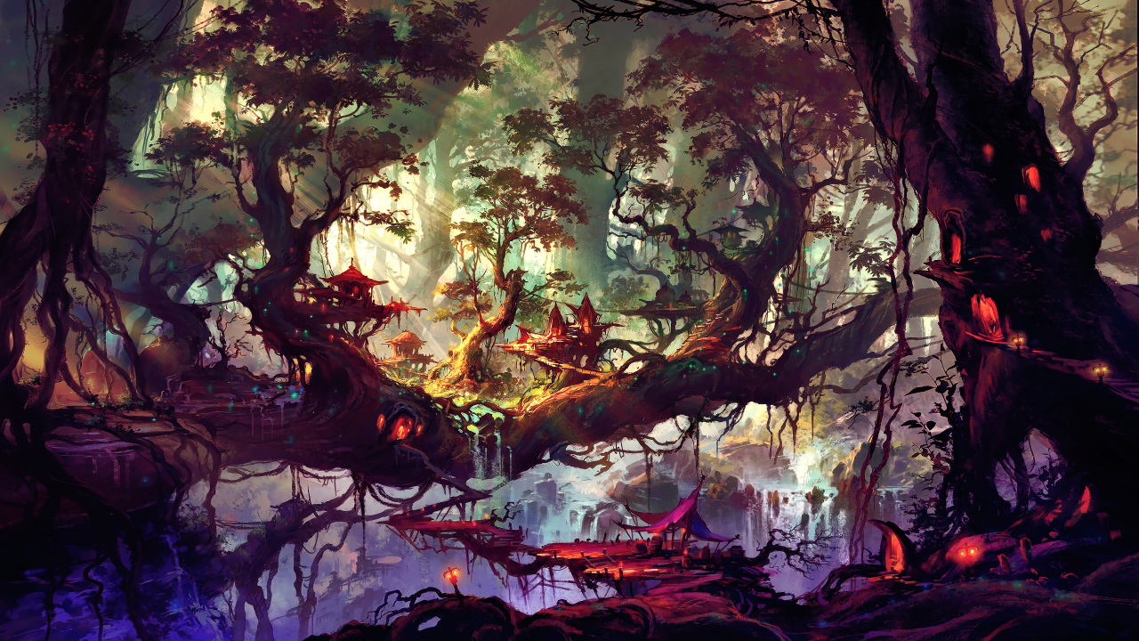 奇幻艺术、扇形艺术、树木、植物、风景、自然、AI艺术、概念艺术