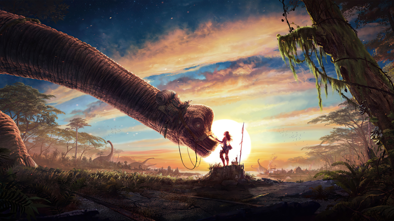 奇幻女孩、恐龙、AI艺术、动物、奇幻艺术、天空