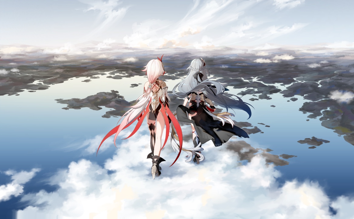 天空、雪、云、户外、动漫女孩、动漫男孩