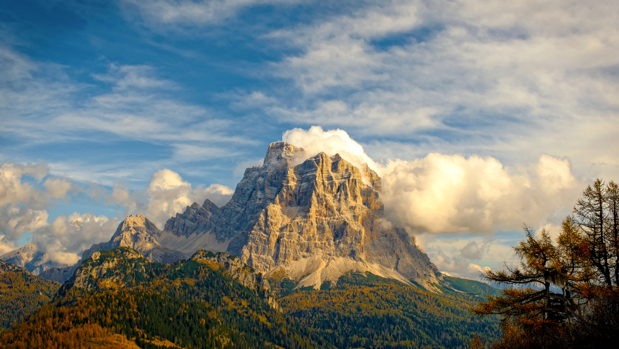 自然、景观、树木、森林、秋天、山脉、岩石、云、天空