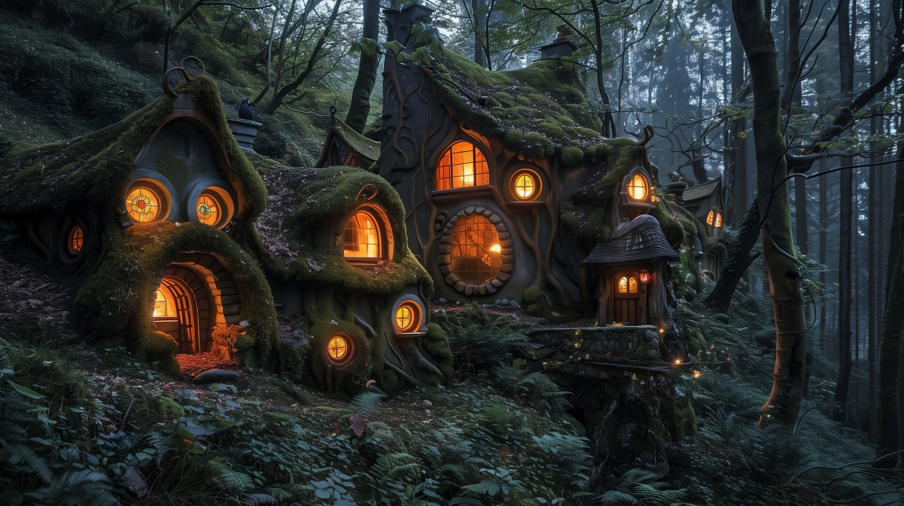 仙女、AI艺术、村庄、房子、微缩模型、森林