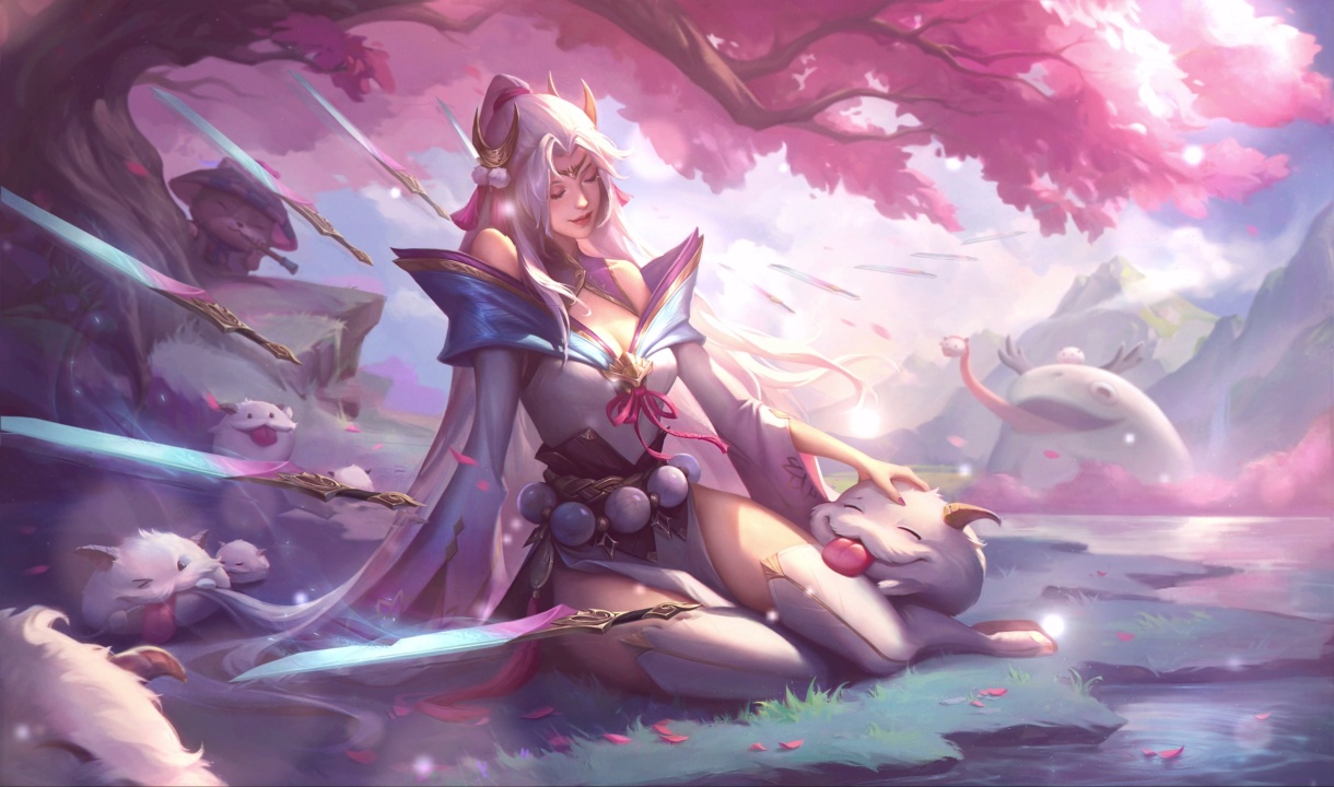 索拉卡、英雄联盟、游戏、人物、LOL、AI艺术、花瓣、天空、云、兽耳、动物