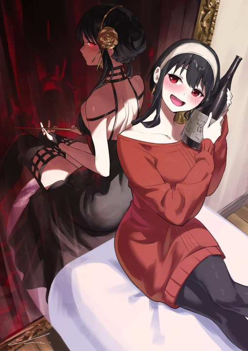 红眼睛、女孩、动漫、间谍过家家、黑发、毛衣