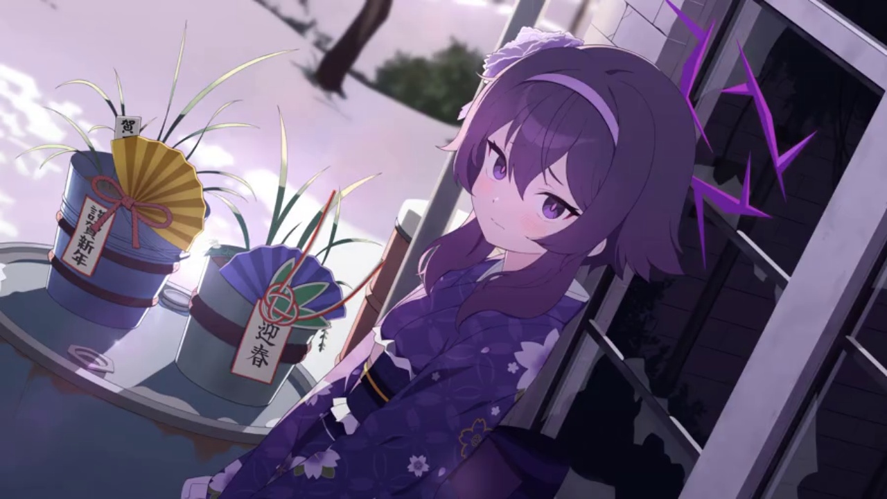 可爱的、紫色、动漫女孩、二次元