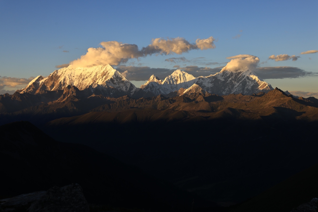 西藏、云、山、雪、自然、天空、日落、风景、夕阳、阳光、雪山