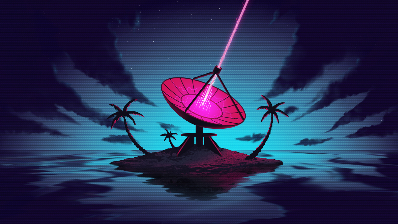 AI艺术、插画、树木、棕榈树、激光、天线、岛屿
