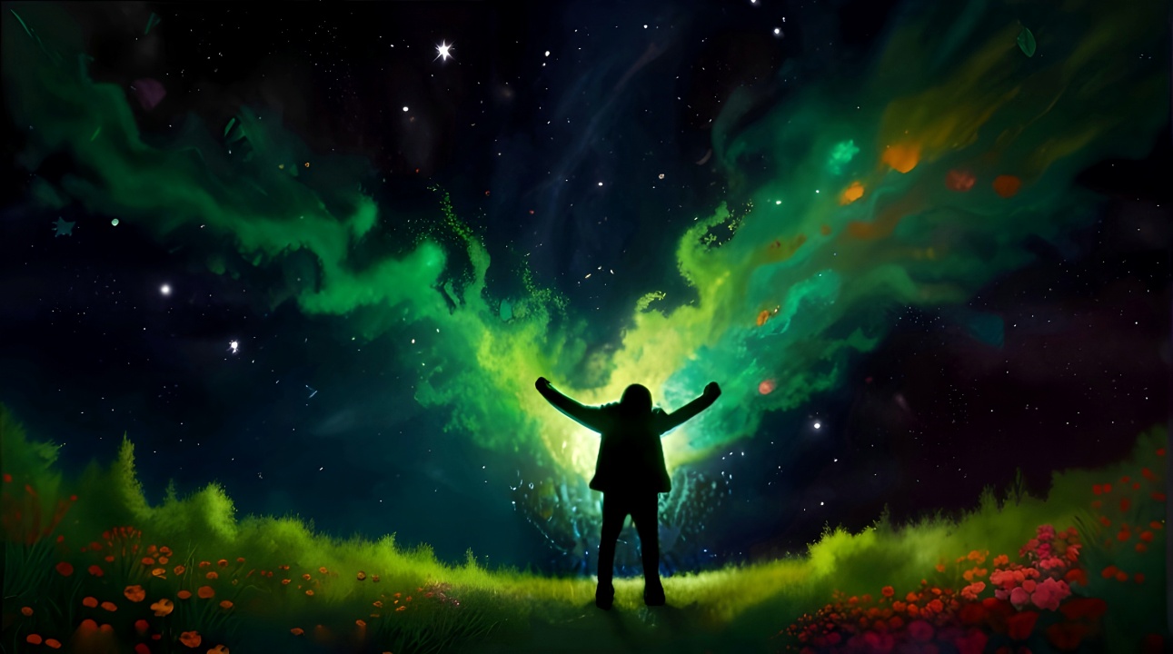自然、插图、人工智能艺术、极光、星夜、五颜六色