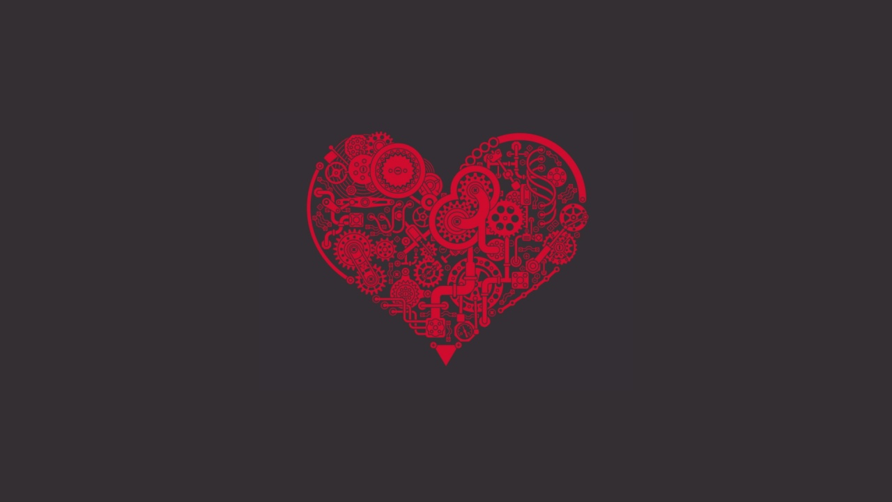 爱心齿轮:黑色背景下的红色浪漫”