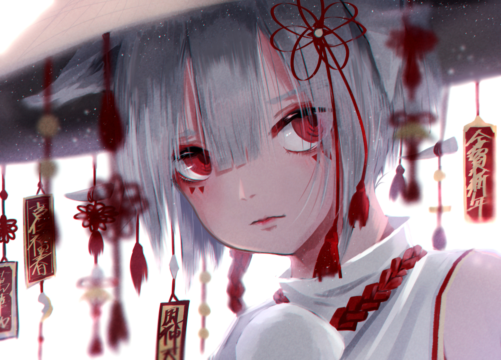 红眼睛、短发、白发、肩膀、动漫、动漫女孩、犬夜叉、服装、化妆