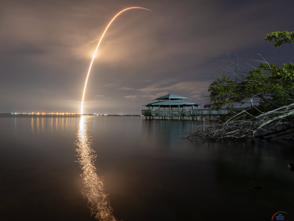 空间、树木、水、火箭、云、发射、风景、夜晚