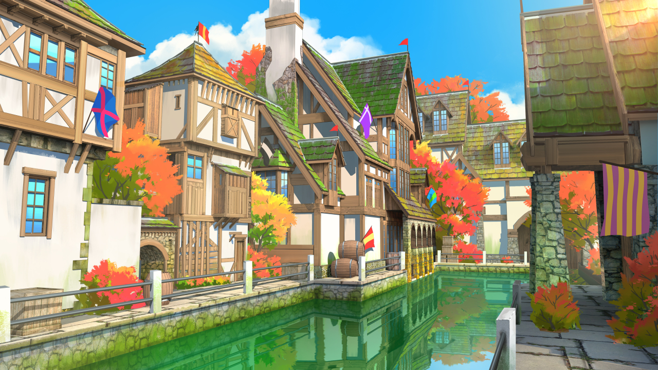 AI艺术、运河、房子、瀑布、旗帜、风景
