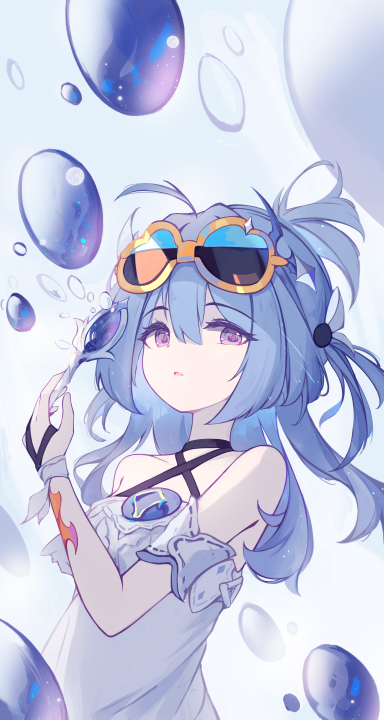 蓝色、头发、艺术、动漫、动漫女孩、太阳镜、白色、连衣裙
