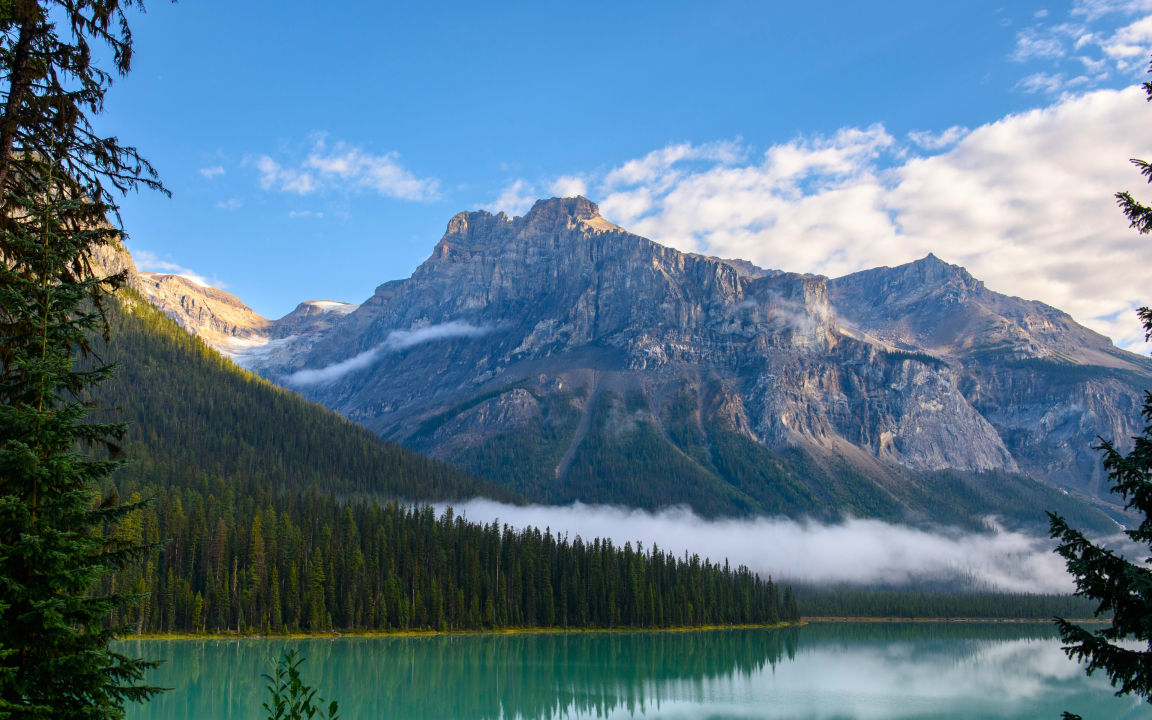 自然、景观、树木、山脉、天空、云、森林、松树、湖、水、翡翠湖