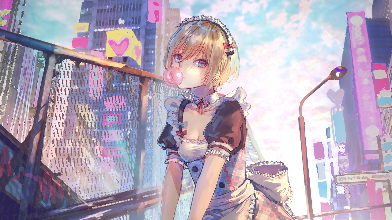 短发、金发、罗基、动漫、女孩、城市、女仆