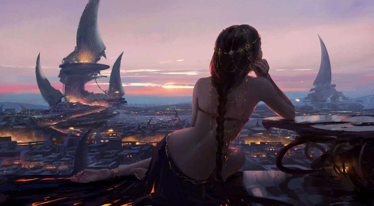 科幻、AI艺术、概念艺术、赛博朋克、未来主义、幻想、日落、未来、景观、城市、游戏CG、汽车、车辆