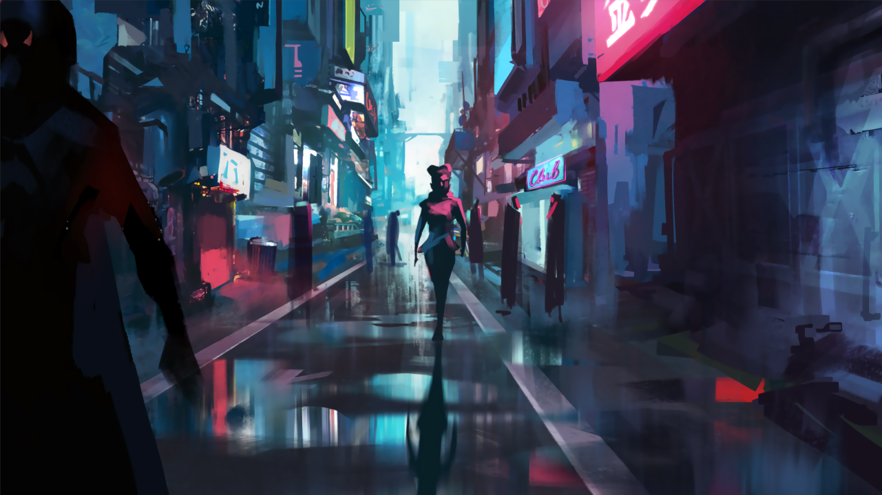 赛博朋克都市中的神秘人物