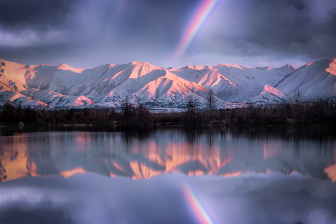 雪山与彩虹的宁静风景