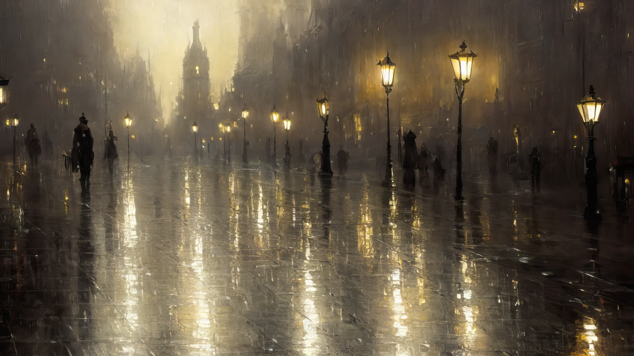 艺术、街道、鹅卵石、路灯、下雨、雨、雨夜