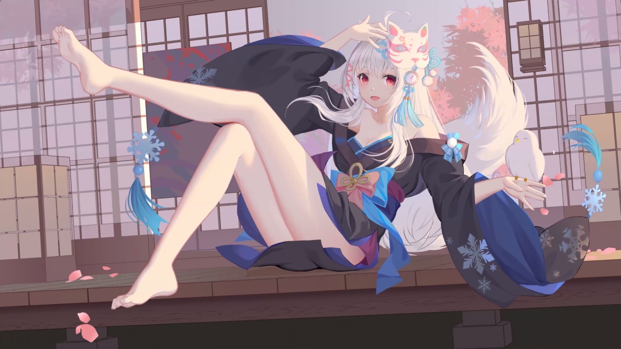 白头发、蓝眼睛、动漫、女孩、明日方舟、剑、兽耳、球迷、天鹅、动物、高跟鞋