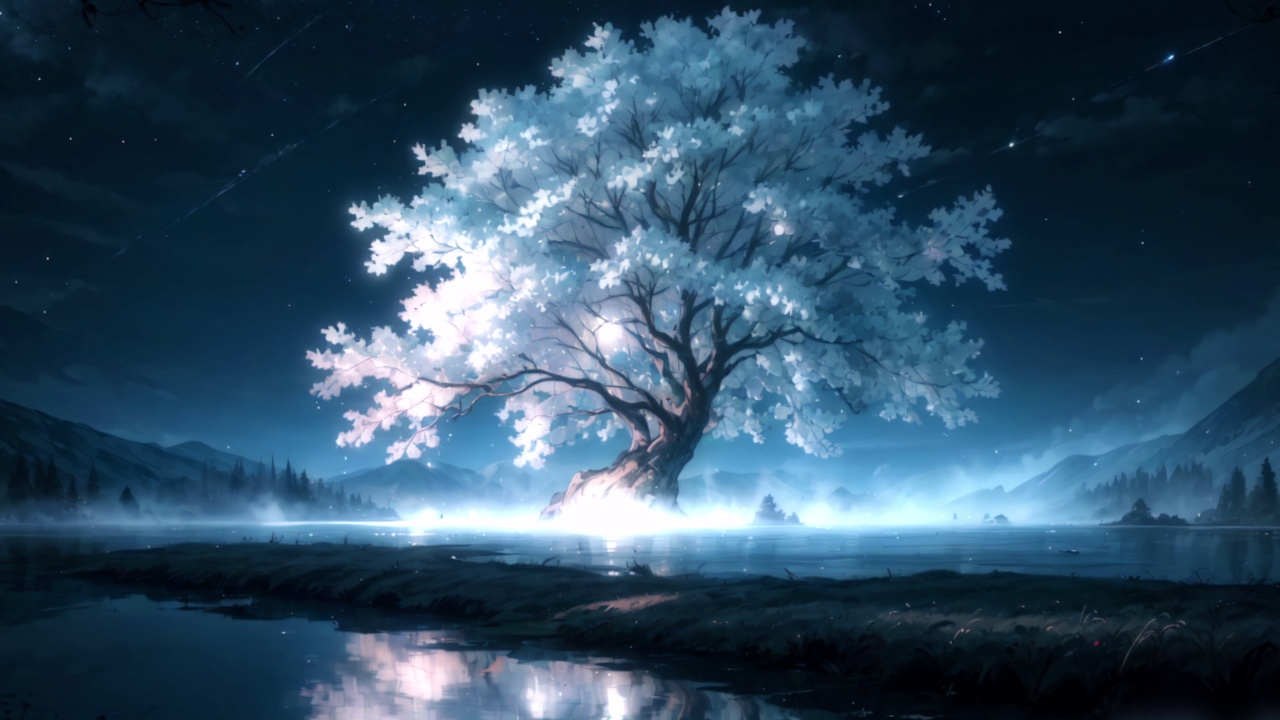 优雅、AI艺术、数字绘画、月亮、夜晚、森林