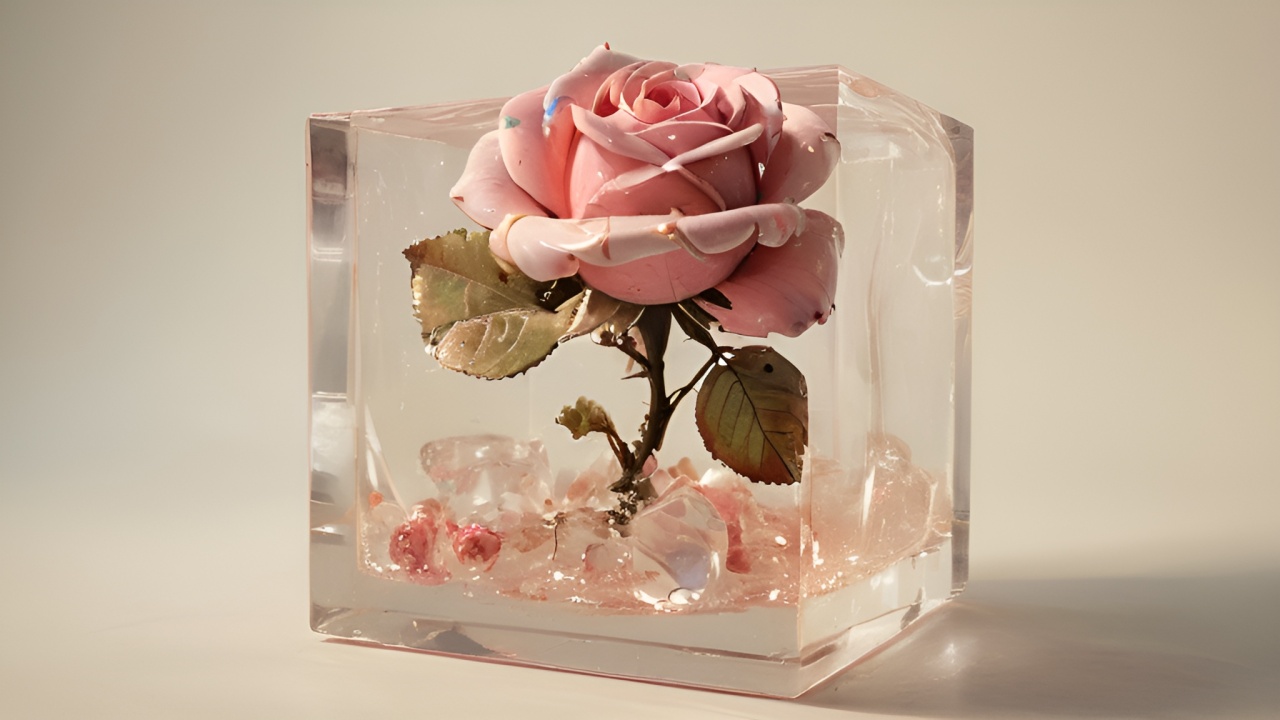 永恒之美:粉红玫瑰的晶莹守护