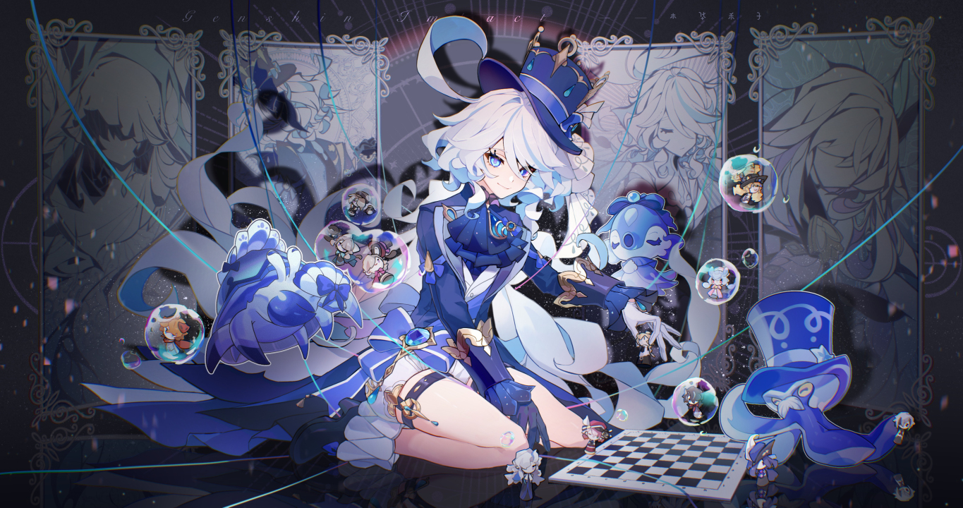 蓝色魔术帽、国际棋盘、动漫、动漫女孩