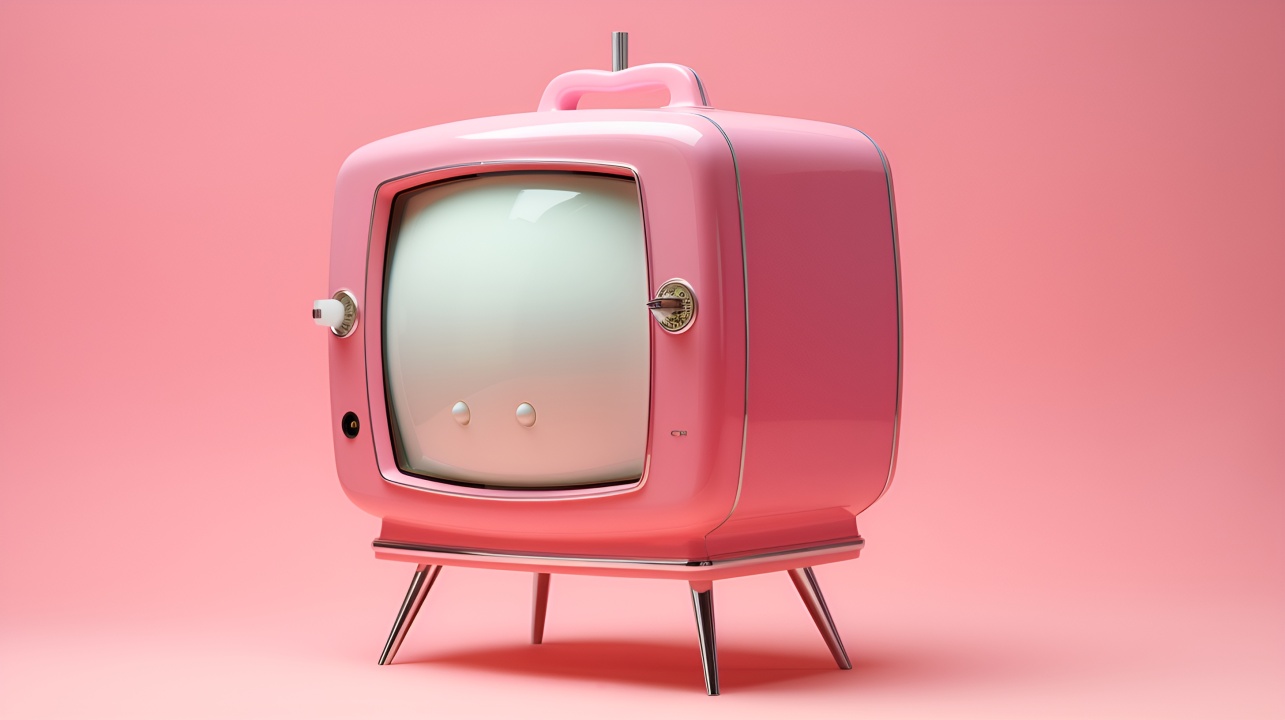 复古粉红电视机:简约而优雅的桌面背景