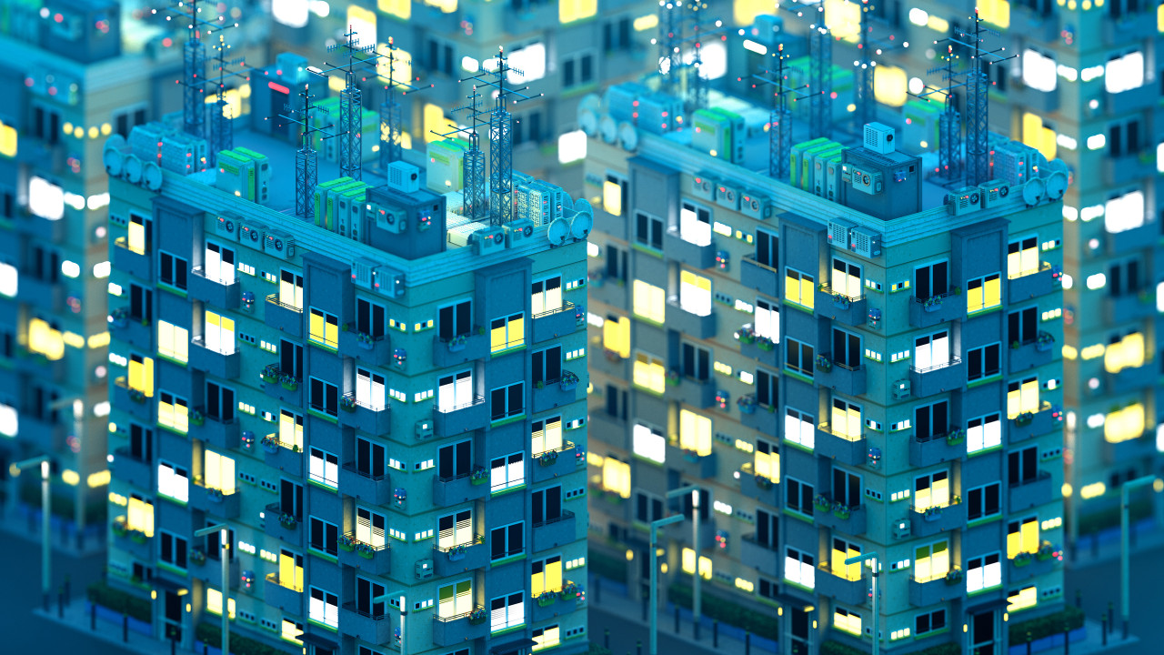 AI艺术、艺术、公寓、块、蓝色、城市、建筑、夜景