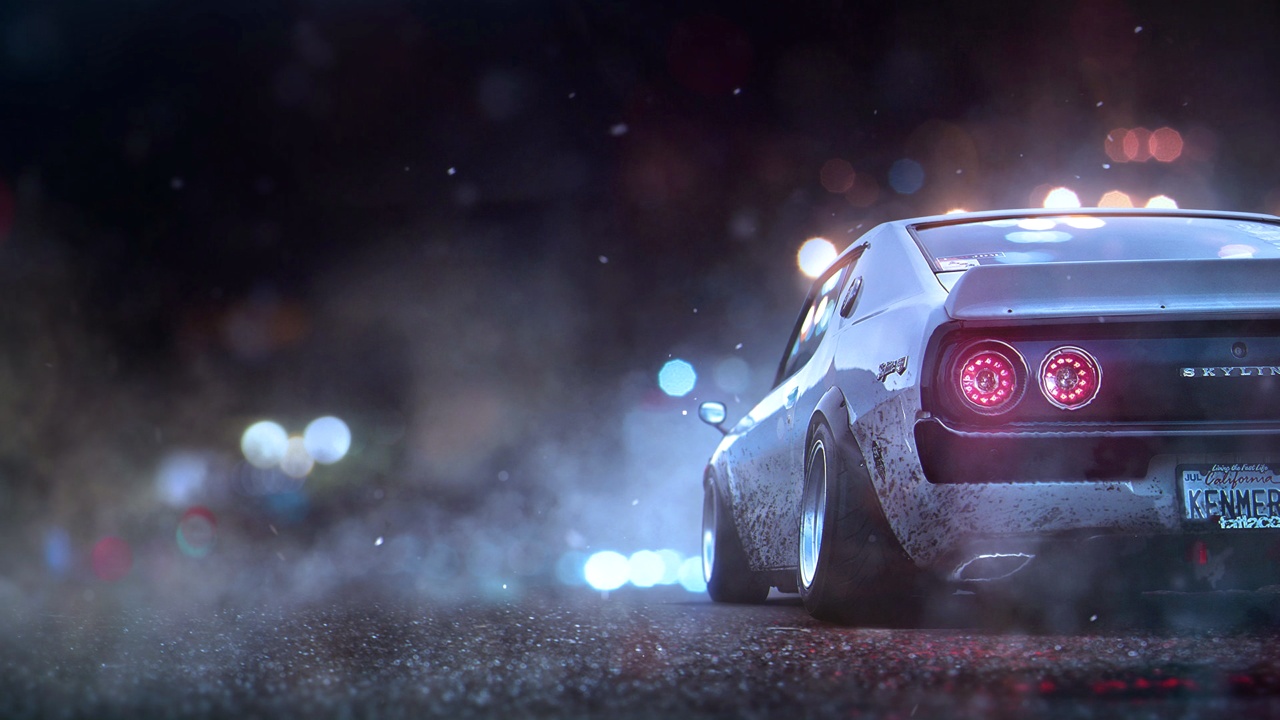 夜色中的速度与激情:赛车后视图壁纸