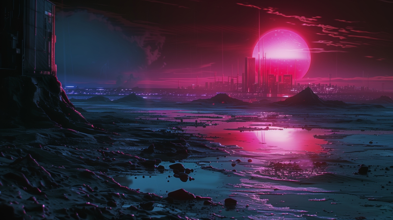AI艺术、插画、粉色、日落、城市