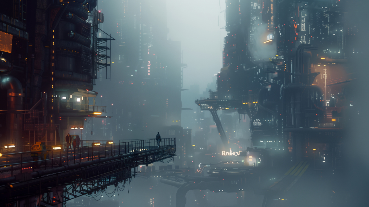 未来城市中的赛博朋克景象