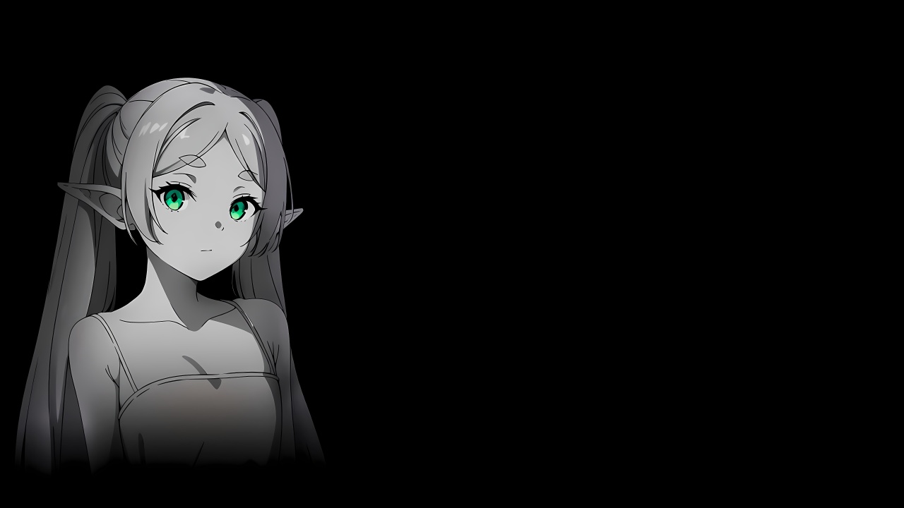 长发、锁骨、简单、背景、动漫、深色背景、尖耳朵、女孩、双胞胎、连衣裙