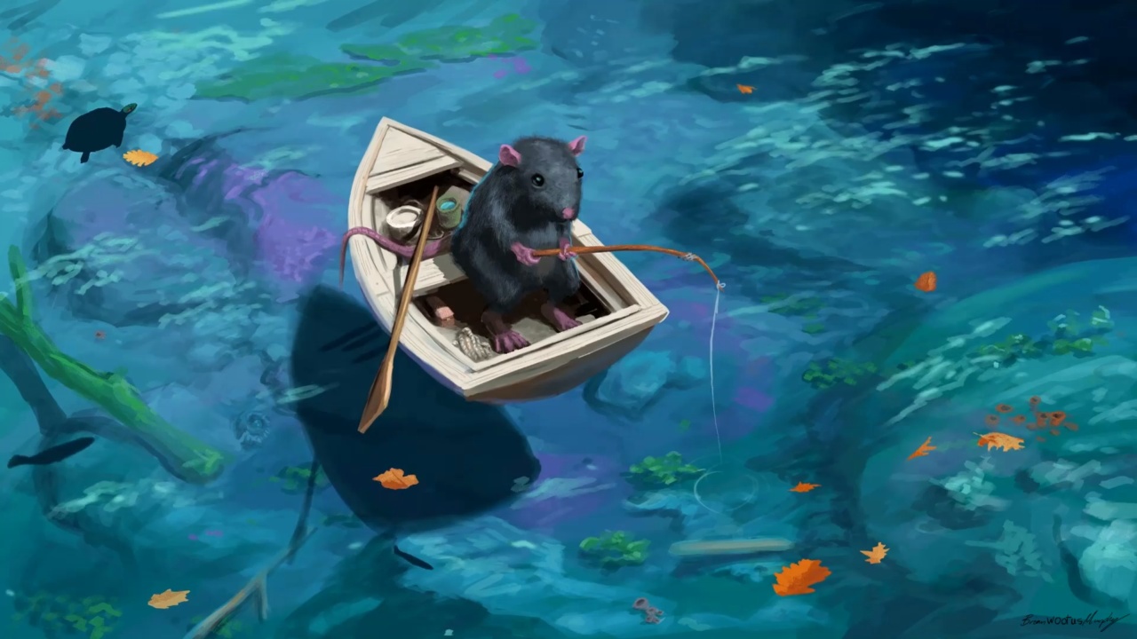 湖上垂钓:小老鼠的宁静冒险