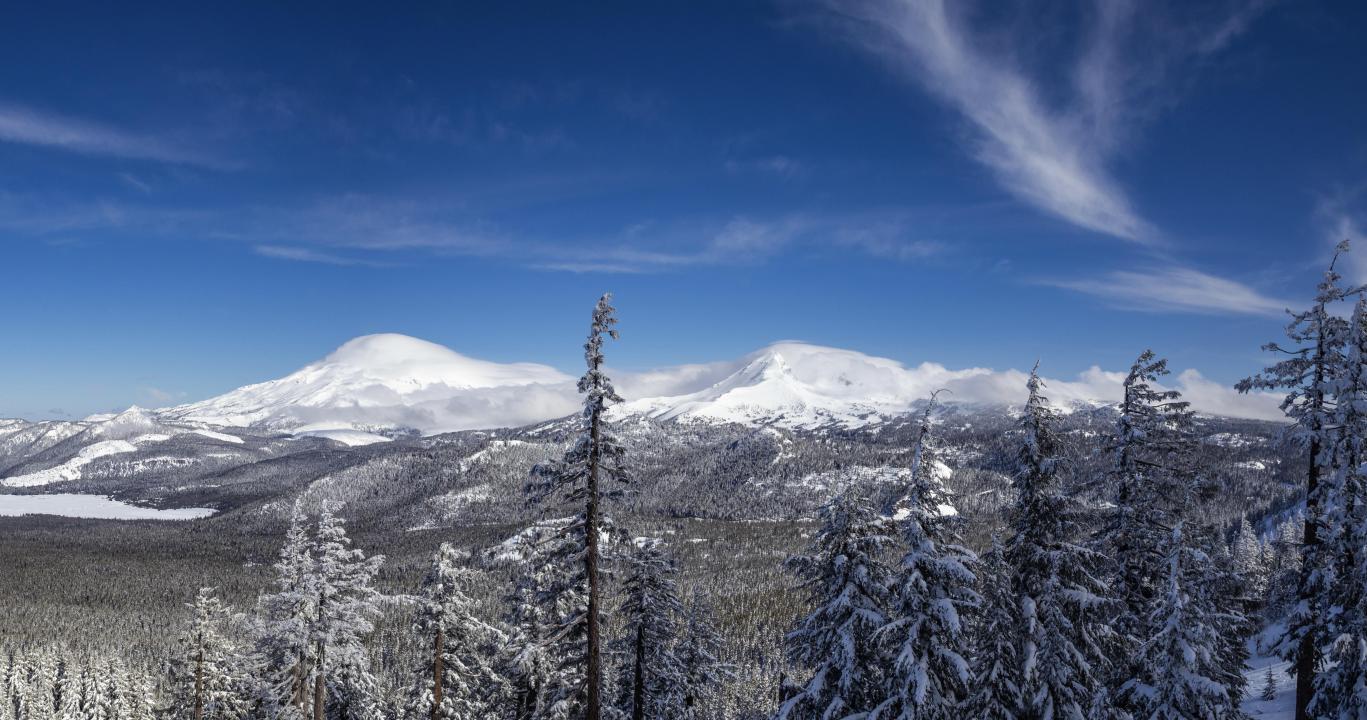 自然、景观、雪、冬季、俄勒冈州、山脉、森林、云、松树、卷云