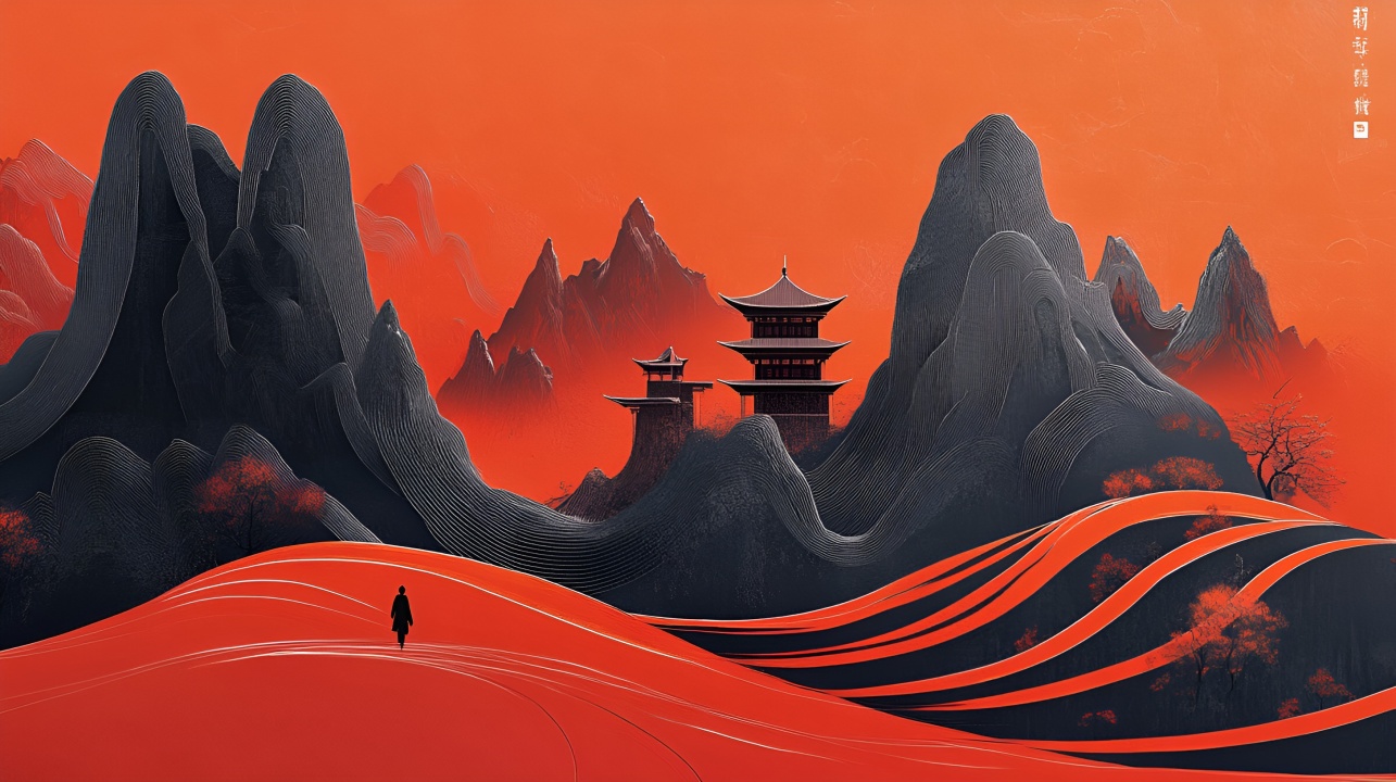 孤影踏赤浪,山巅揽仙踪”