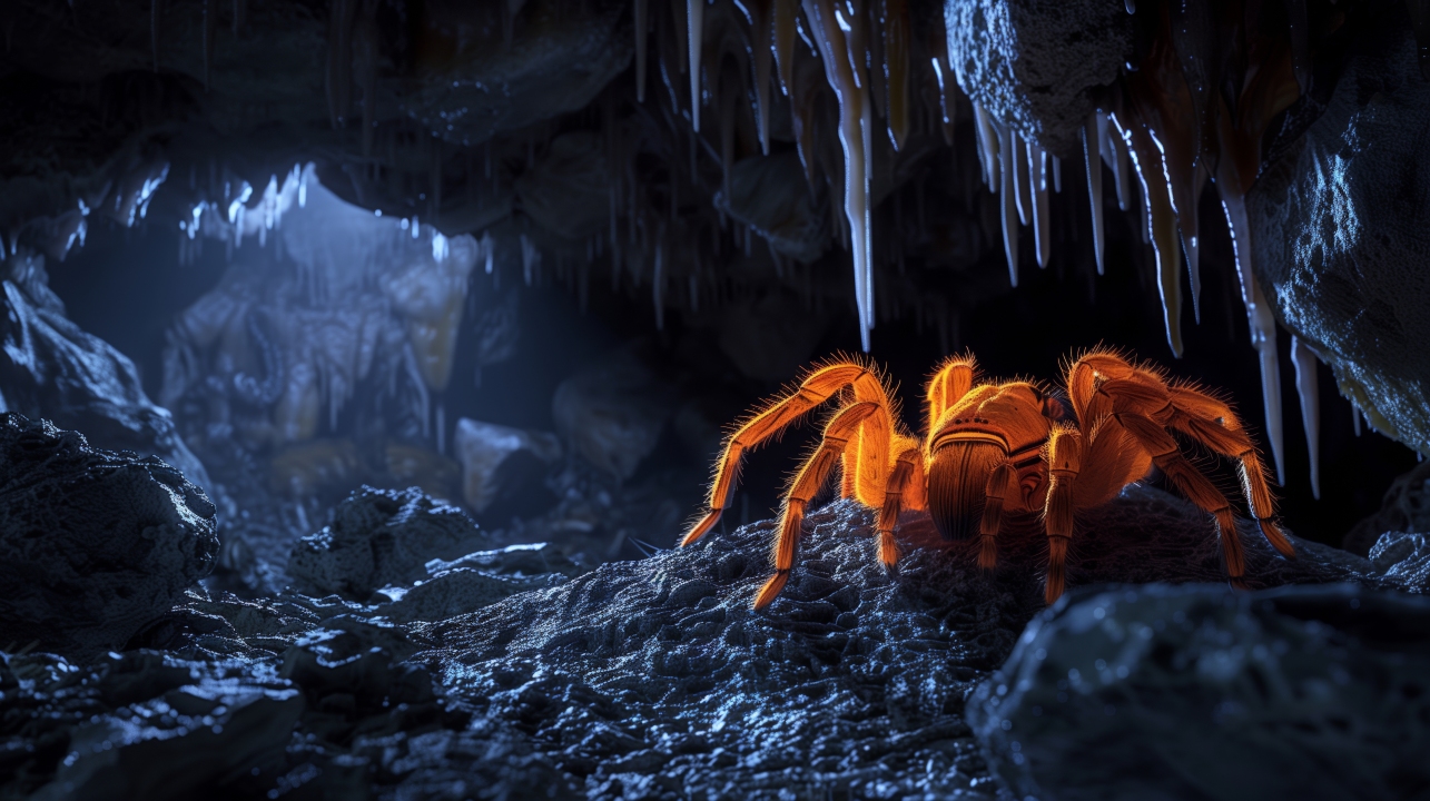 洞穴中的橙色蜘蛛