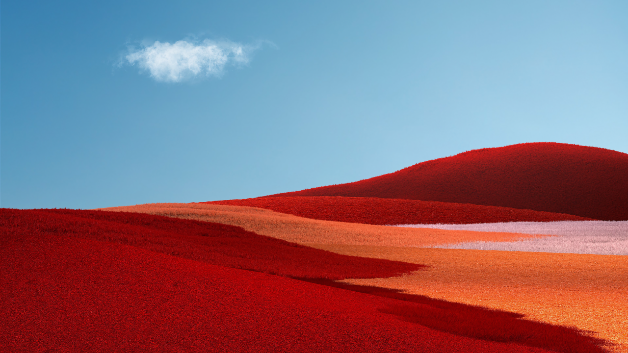 红色田野与蓝天白云