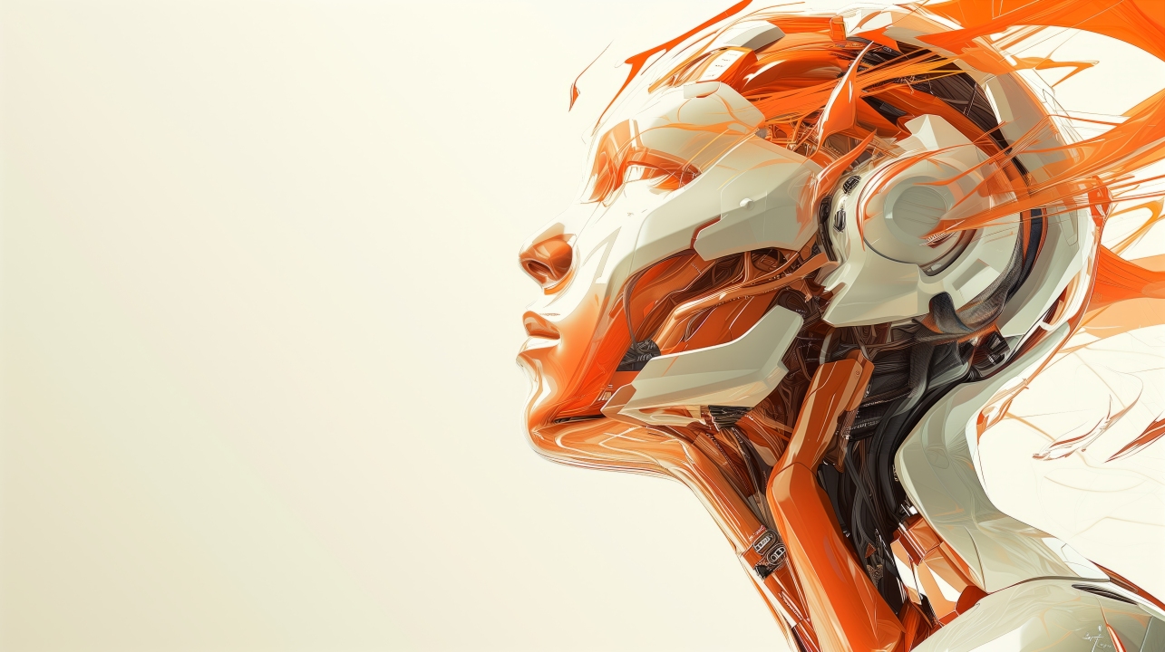 橙色、机器人、白色、插图