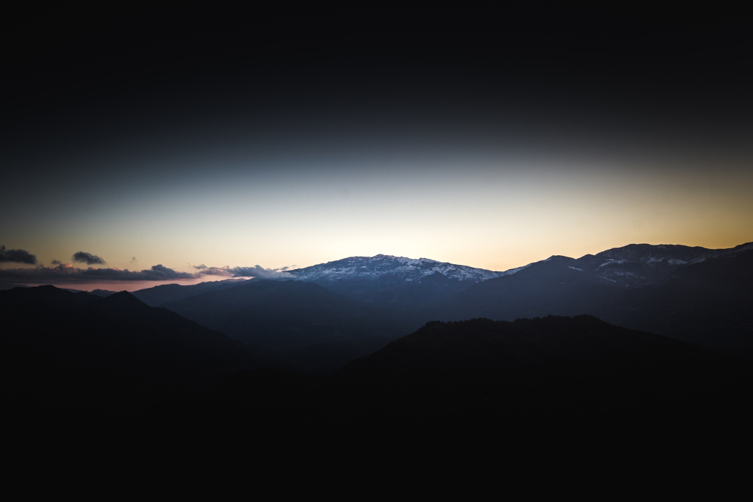 山脉、风景、自然、薄雾、极简主义、日落、日出、云、黑暗、天空、简单背景