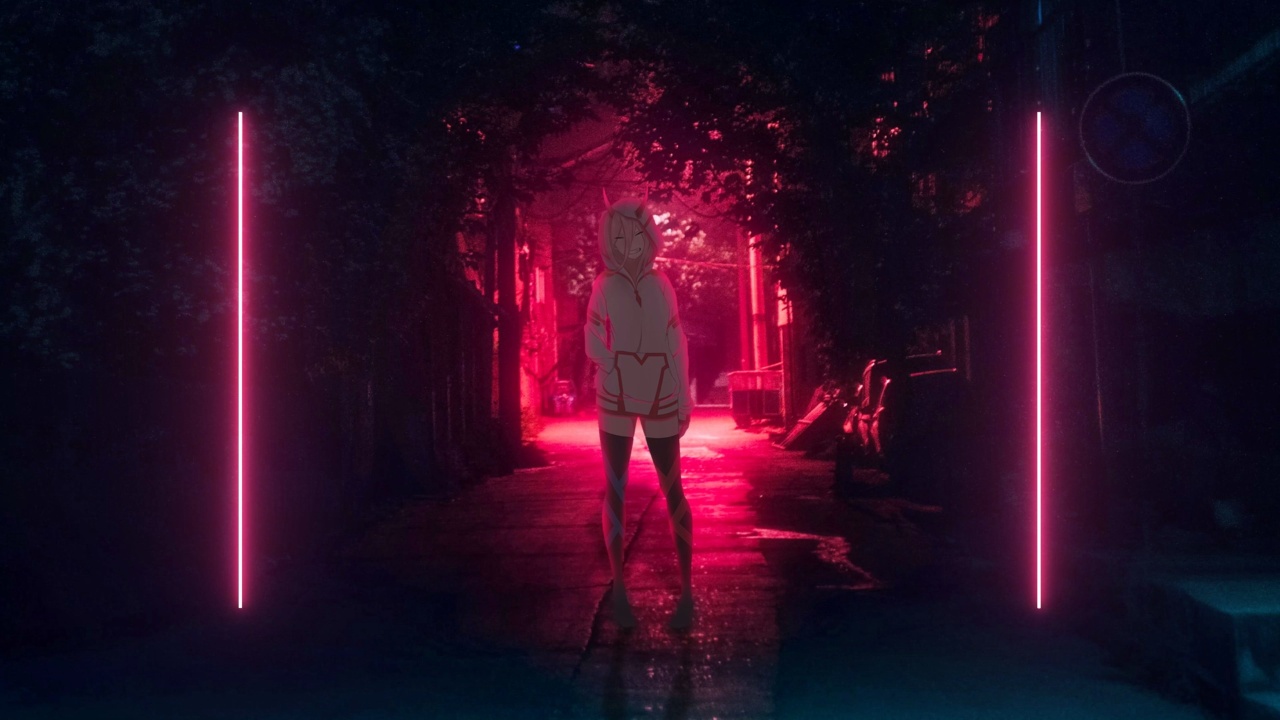 粉色、合成波、氖、动漫女孩、二次元