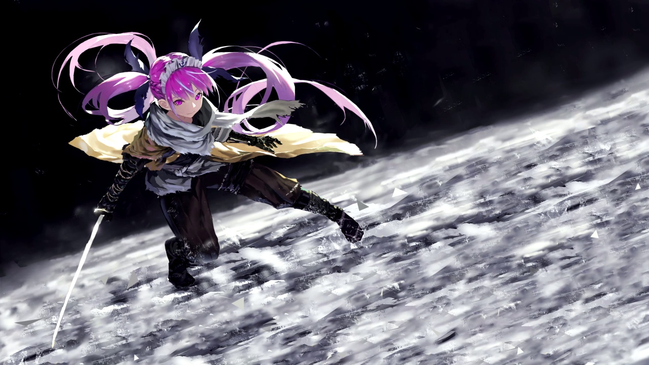 粉色、酷、可爱的、躲闪、动漫女孩、二次元