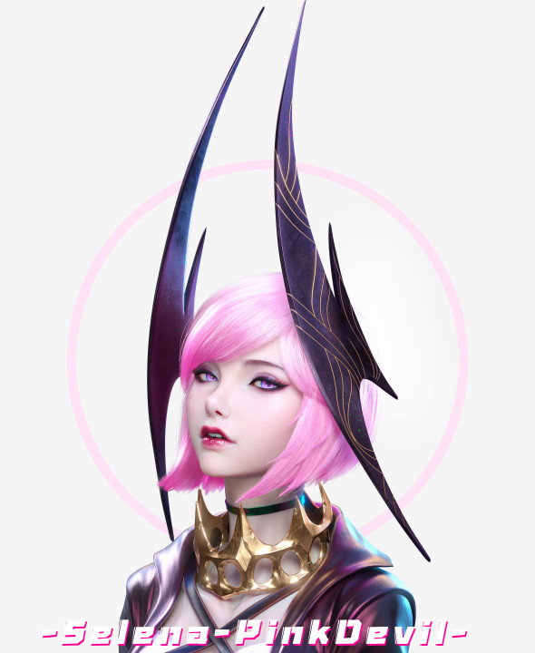女人、粉色头发、短发、粉色眼睛、口红、金色、肖像、简单背景、白色