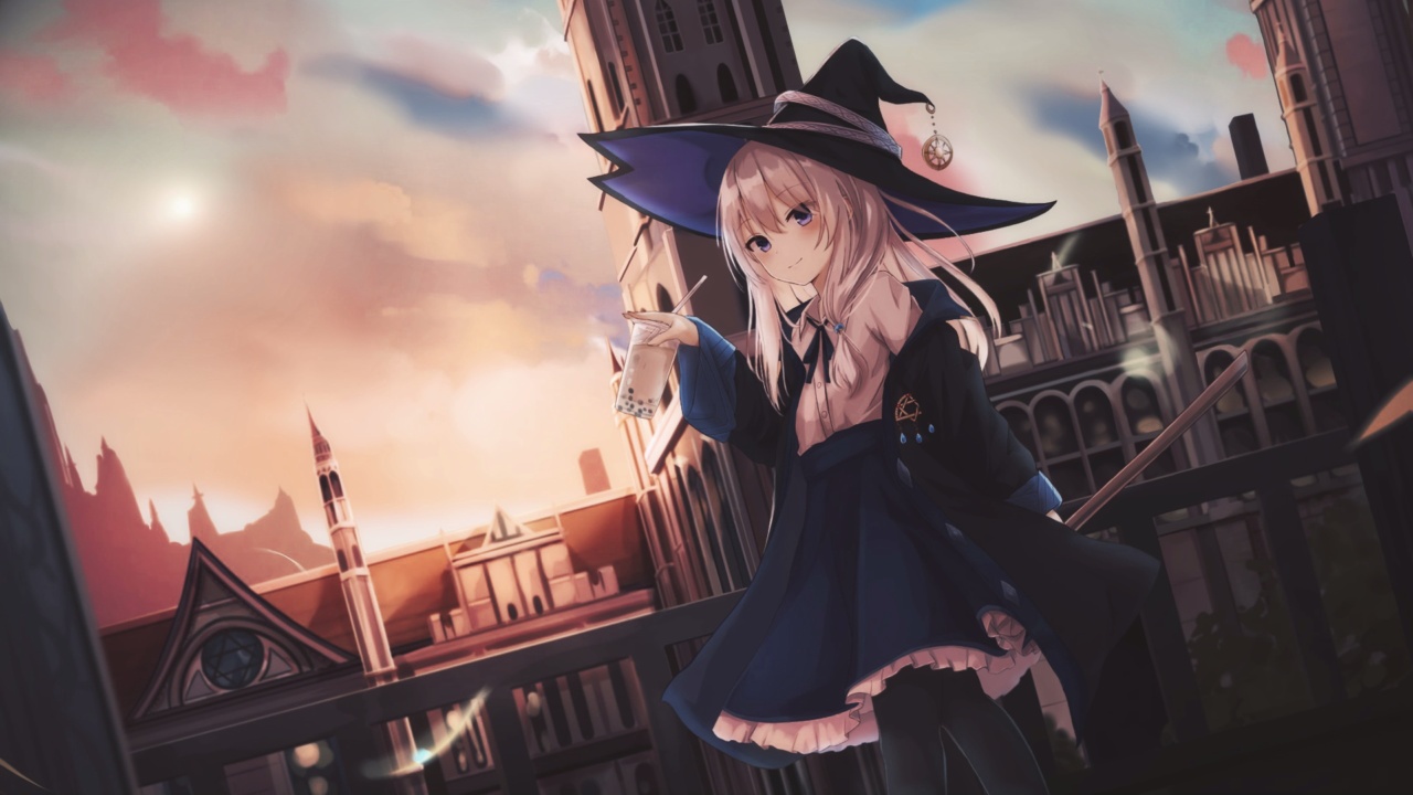 魔术师、动漫、女孩、月亮、花瓣、花朵、AI艺术