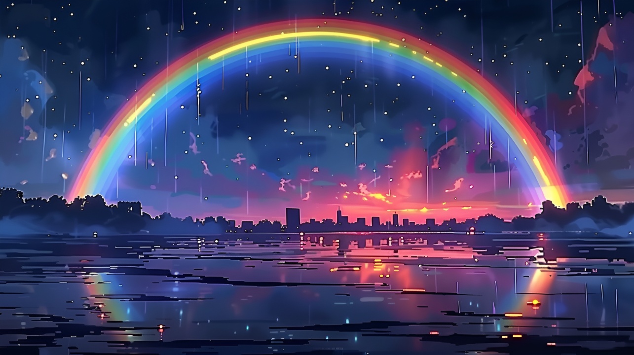 梦幻彩虹:城市夜空的奇迹