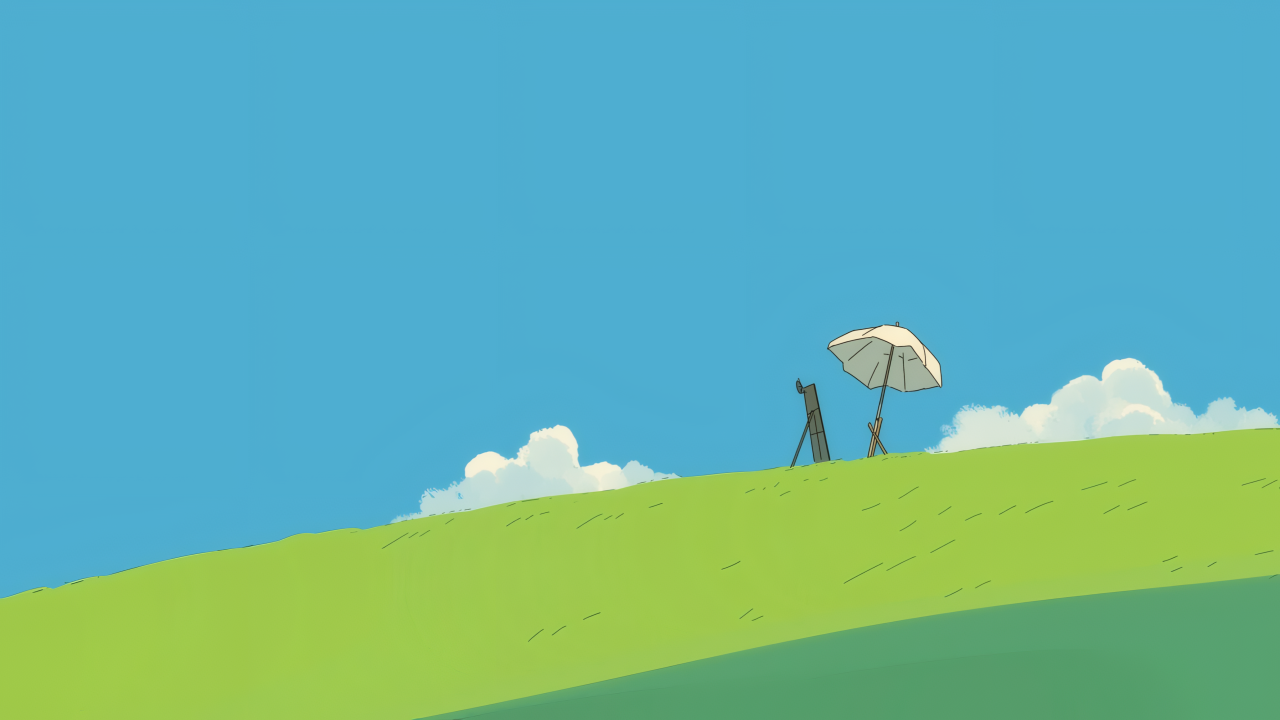 数码艺术、艺术品、风升起、伞、画架