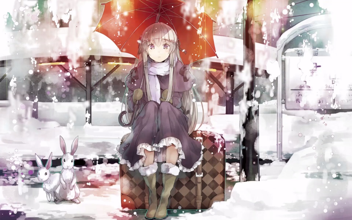 动漫、动漫女孩、校服、火车、风景