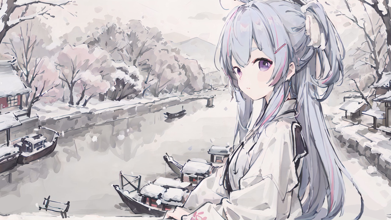 白发、土豆、动漫、女孩、AI艺术、肖像、本海、异瞳